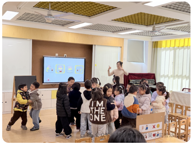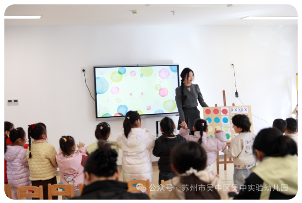 音乐,是冬天里最闪亮的“雪花”,是开启幼儿情感世界的钥匙,更是激发无限想象与创造力的种子。11月28日,吴中实验幼儿园教育集团承办了“冬日里的音乐派对”观摩研讨活动。活动中,教师们根据幼儿年龄特点与兴趣经验,精心设计了8节各具特色的音乐集体教学活动,涵盖小班、中班、大班不同年龄段,呈现了一场视听盛宴: