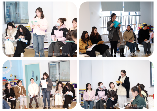 观摩结束后,老师们围坐在一起,开启了热烈的研讨。执教老师首先进行了活动设计的分享,并针对活动后的亮点和不足进行了反思。