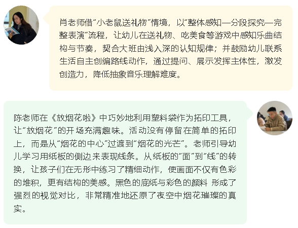 活动中,集团内各园的优秀教师代表们带来了8节风格各异、精彩纷呈的集体教学活动。授课教师们紧扣各年龄段幼儿的发展特点,精心设计教学环节,以生动有趣的情境导入、丰富多样的教学方法,引导幼儿积极参与、主动探索,让课堂充满了欢声笑语与思维碰撞。